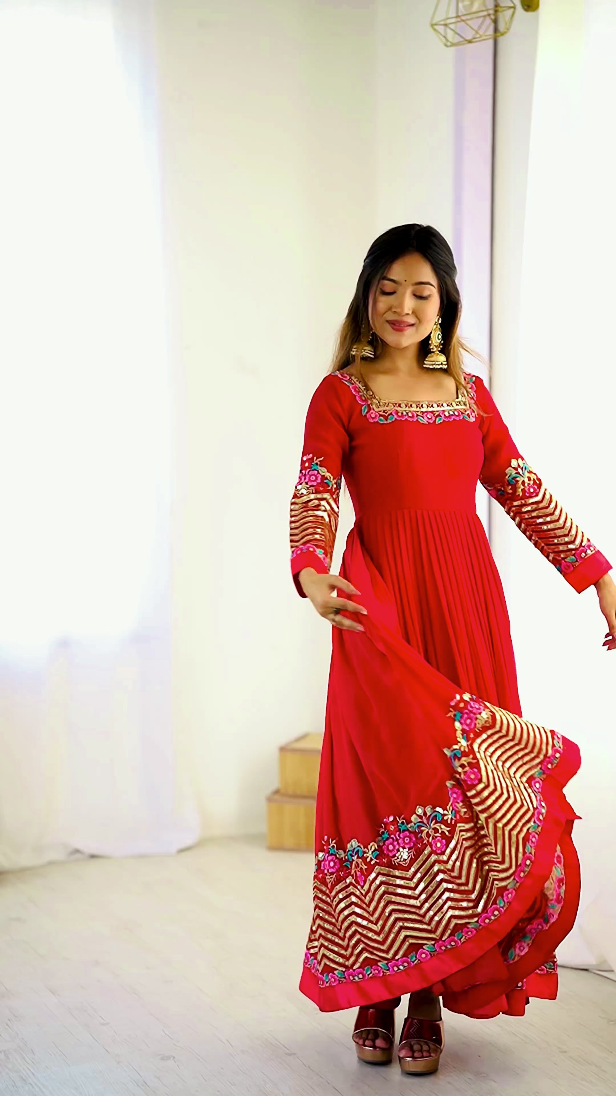 Heavy Georgette Embroidered Gown Set with Dupatta & Bottom (Ready to Wear)