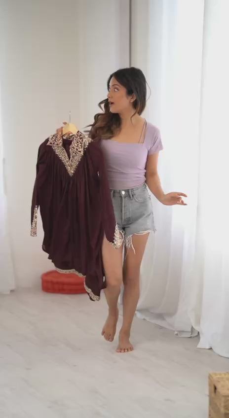 New Designer Partywear Heavy Chinon with Embroidery Sequence Work Kurta With Plazzo Set
